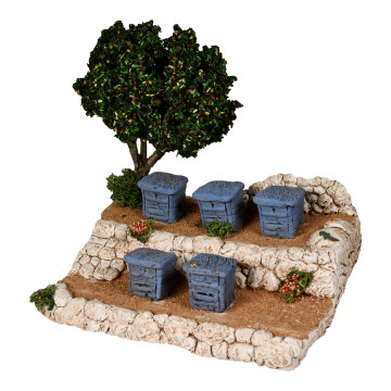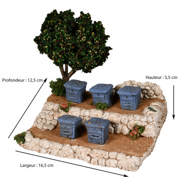 Ce décor de crèche provençale est idéal pour accueillir vos santons : l’apiculteur, les paysans, les bergers ou encore les animaux. Chaque détail – pierres, végétation, ruche – est travaillé avec soin pour donner vie à vos scènes et enrichir votre univers de santons de Provence.