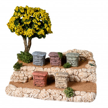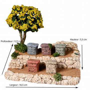 Ce décor de crèche provençale est idéal pour accueillir vos santons : l’apiculteur, les paysans, les bergers ou encore les animaux. Chaque détail – pierres, végétation, ruche – est travaillé avec soin pour donner vie à vos scènes et enrichir votre univers de santons de Provence.